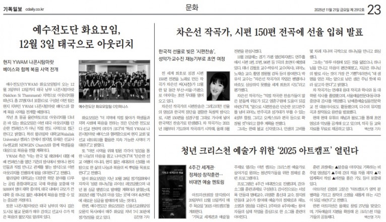 뮤직타임 [기사] 예수전도단 화요모임, 12월 3일 태국으로 아웃리치(기독일보)