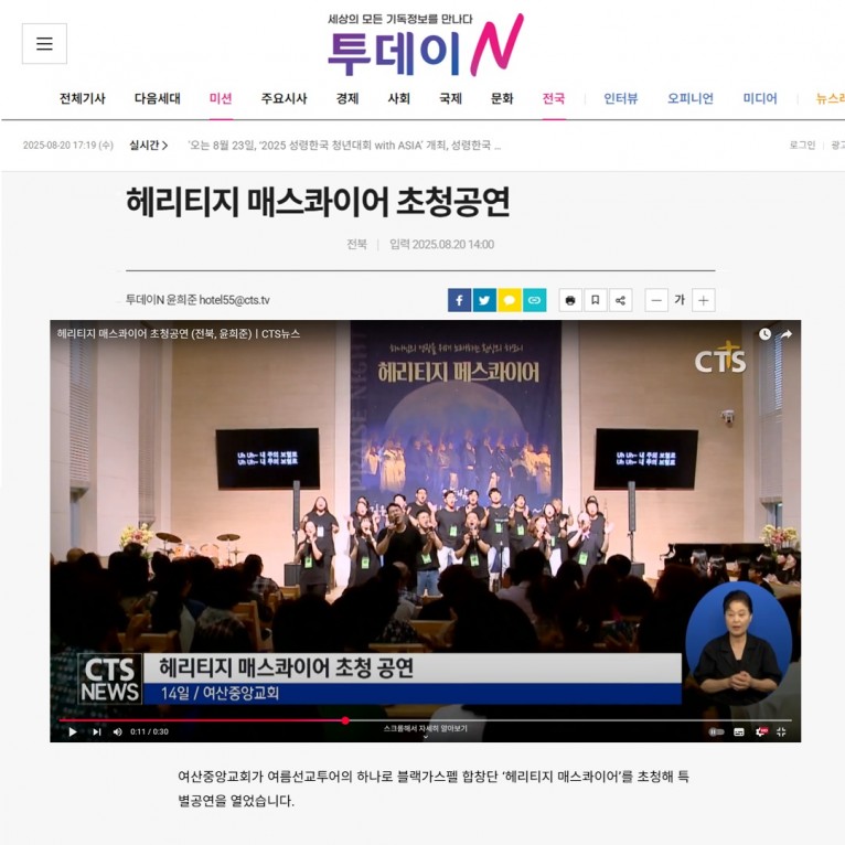 뮤직타임 [방송] 헤리티지 매스콰이어 초청공연(CTS)