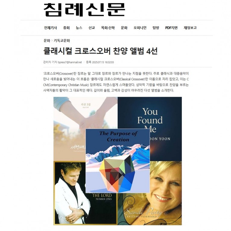뮤직타임 [기획기사] 클래시컬 크로스오버 찬양 앨범 4선(침례신문)
