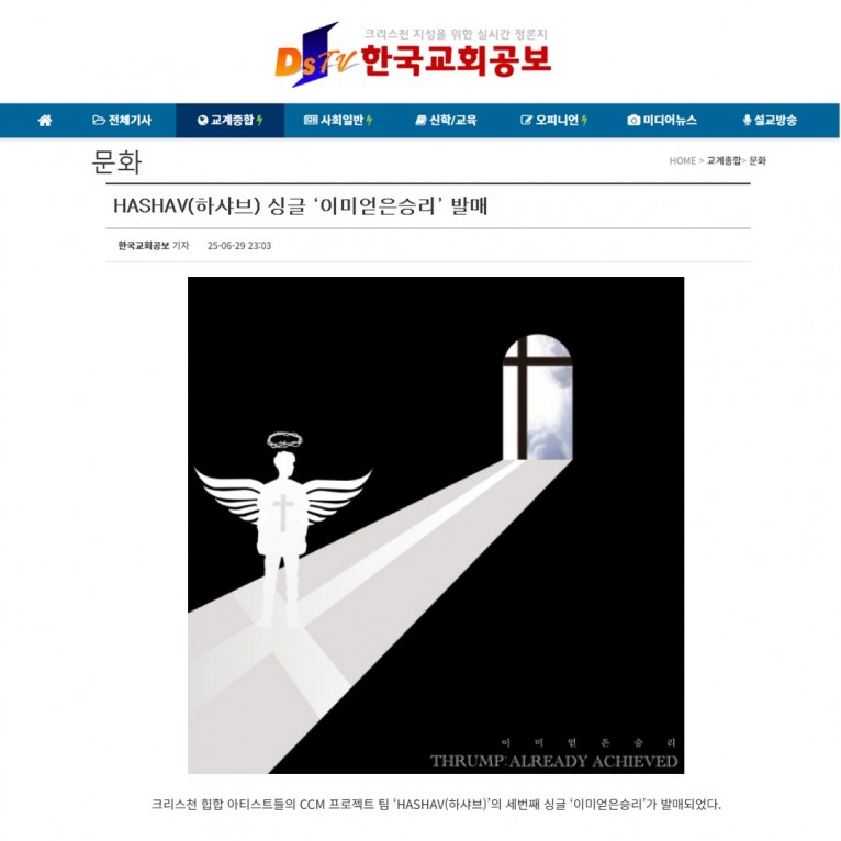 [기사] HASHAV(하샤브) 싱글 ‘이미얻은승리’ 발매(한국교회공보)