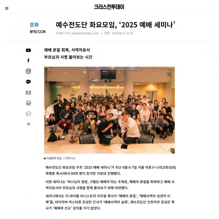 [기사] 예수전도단 화요모임, ‘2025 예배 세미나’(크리스천투데이)