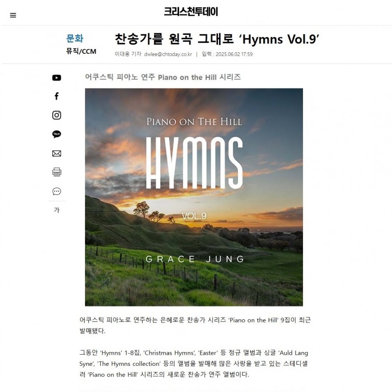 [기사] 찬송가를 원곡 그대로 ‘Hymns Vol.9’(크리스천투데이)