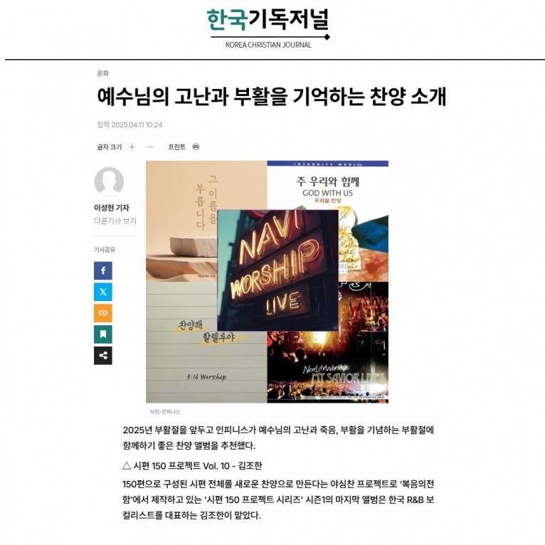 2025년 부활절을 앞두고 인피니스가 예수님의 고난과 죽음, 부활을 기념하는 부활절에 함께하기 좋은 찬양 앨범을 추천했다.
