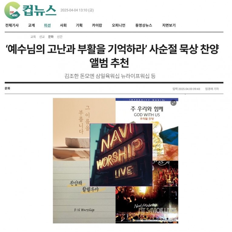 [기획기사] ‘예수님의 고난과 부활을 기억하라’ 사순절 묵상 찬양 앨범 추천(크리스챤연합신문 컵뉴스)