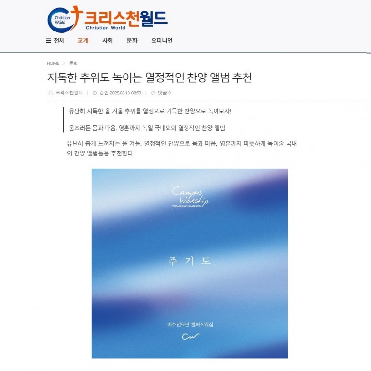 [기획기사] 지독한 추위도 녹이는 열정적인 찬양 앨범 추천(크리스천월드)