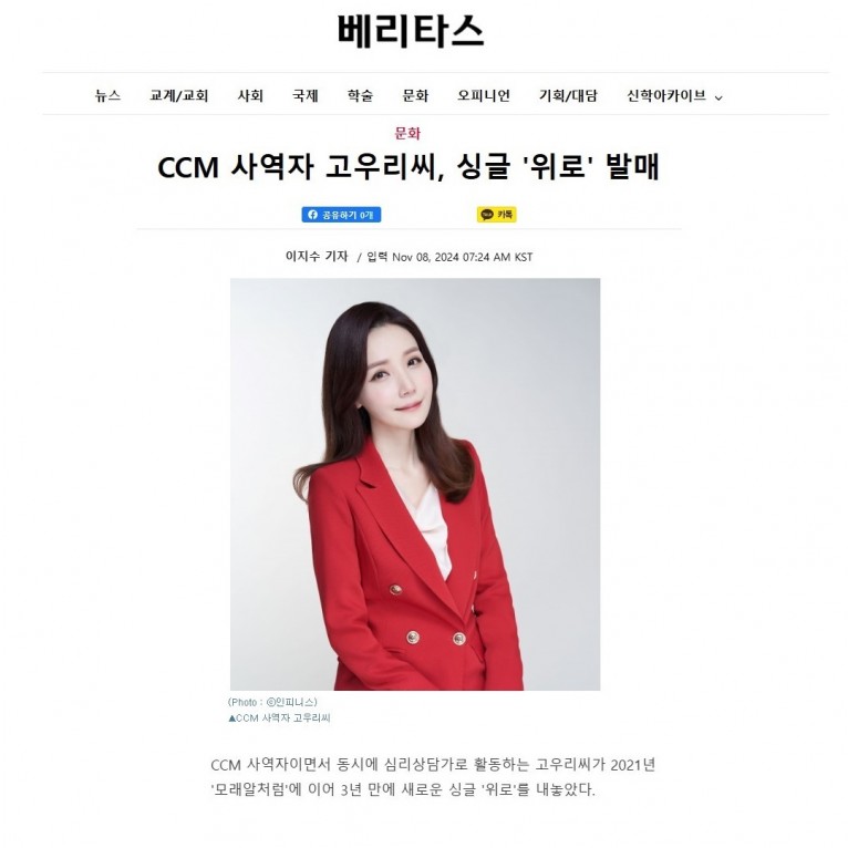 [기사] CCM 사역자 고우리씨, 싱글 '위로' 발매(베리타스)