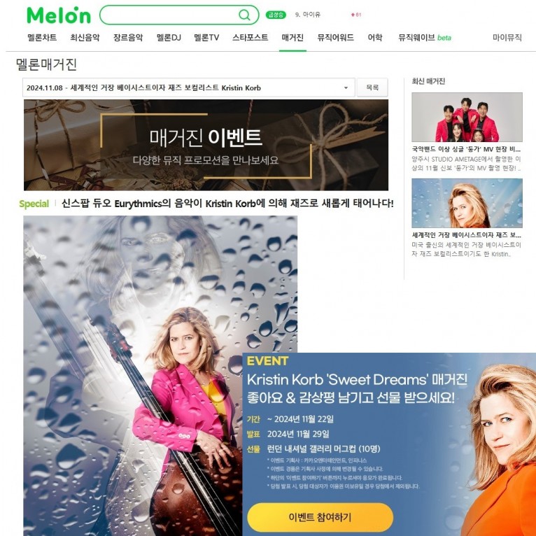 뮤직타임 [Melon Magazine & Event] Kristin Korb - Sweet Dreams