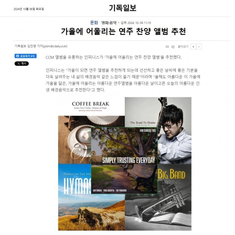 [기획기사] 가을에 어울리는 연주 찬양 앨범 추천(기독일보)