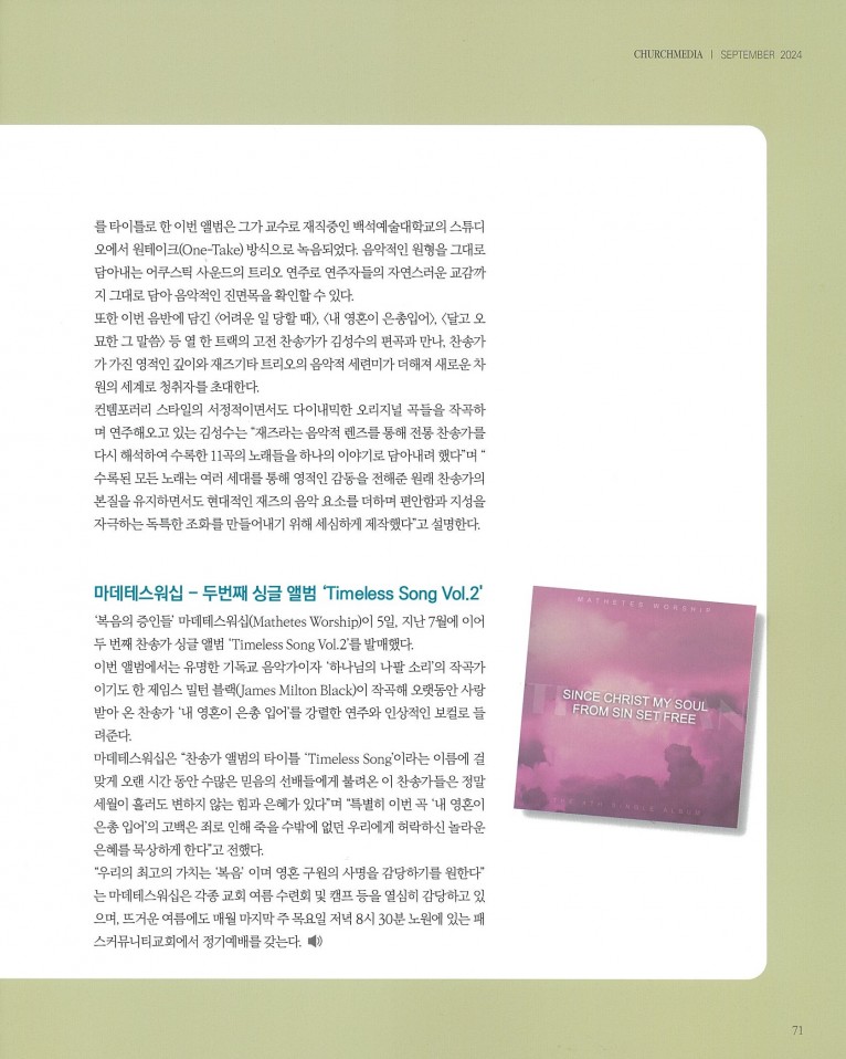 [잡지] New Album_ 시편 150 프로젝트 Vol. 5 - 류지광 (싱글) 등 3편(월간 Church Media 2024.9월호)