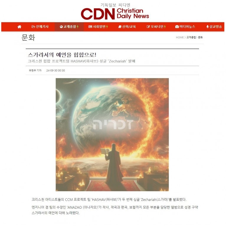 [기사] 스가랴서의 예언을 힙합으로!(기독일보 씨디엔)