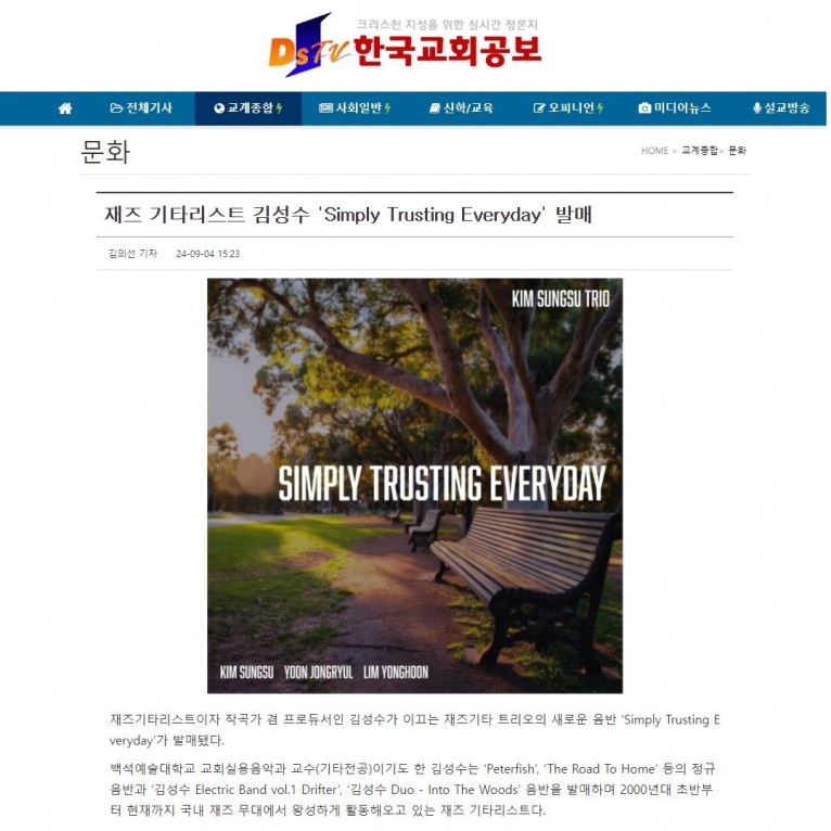 [기사] 재즈 기타리스트 김성수 'Simply Trusting Everyday' 발매(한국교회공보)