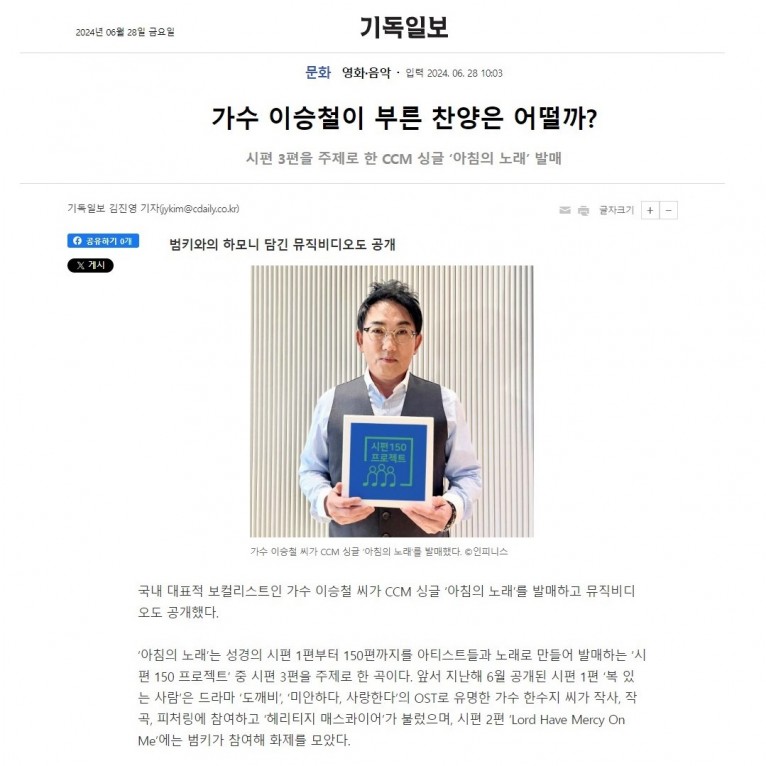 [기사] 가수 이승철이 부른 찬양은 어떨까(기독일보)