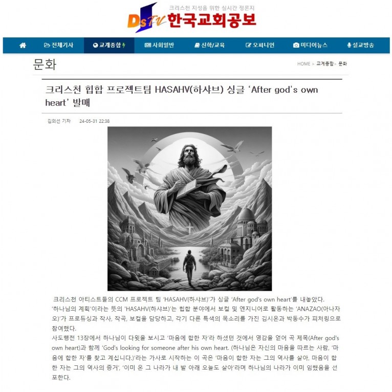 [기사] 크리스천 힙합 프로젝트팀 HASHAV(하샤브) 싱글 ‘After god's own heart’ 발매(한국교회공보)