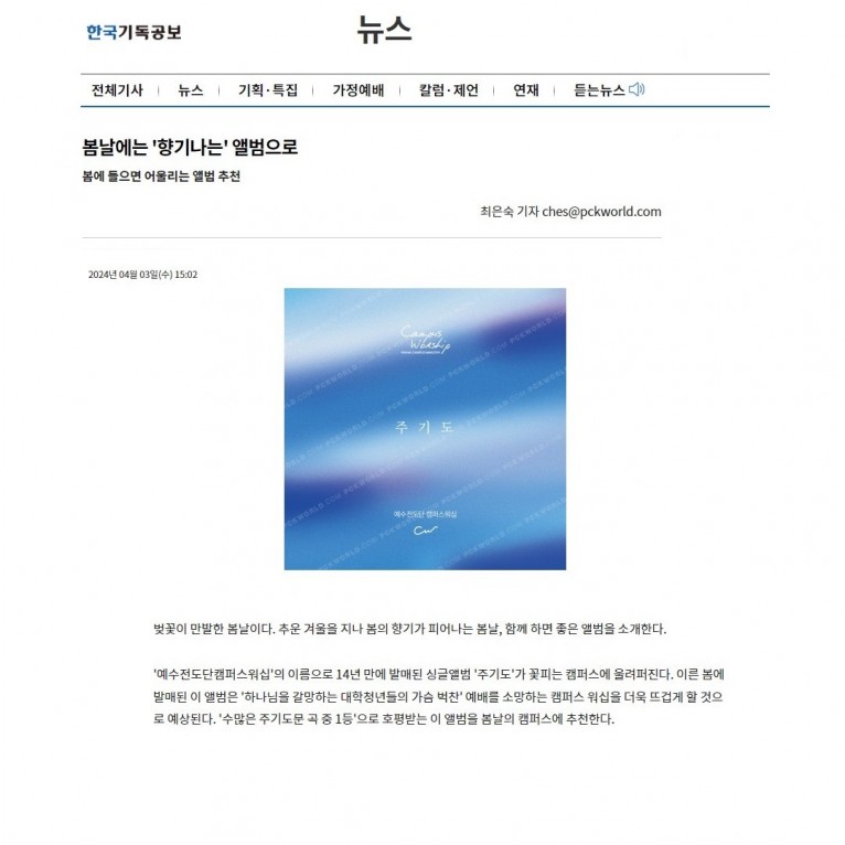 [기획기사] 봄날에는 '향기나는' 앨범으로(한국기독공보)