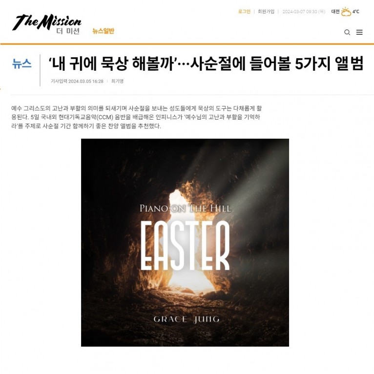 뮤직타임 [기획기사] ‘내 귀에 묵상 해볼까’···사순절에 들어볼 5가지 앨범(국민일보 더미션)