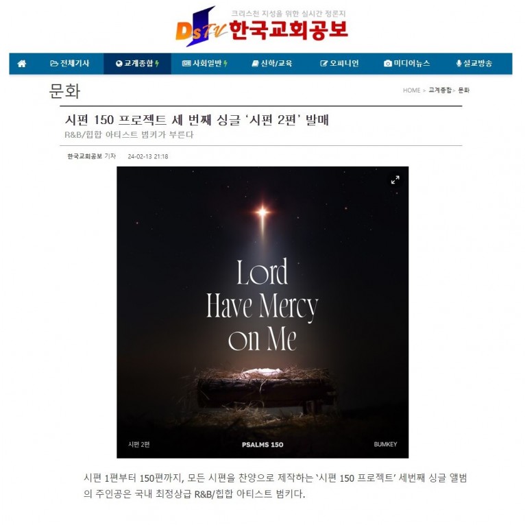[기사] 시편 150 프로젝트 세 번째 싱글 ‘시편 2편’ 발매(한국교회공보)