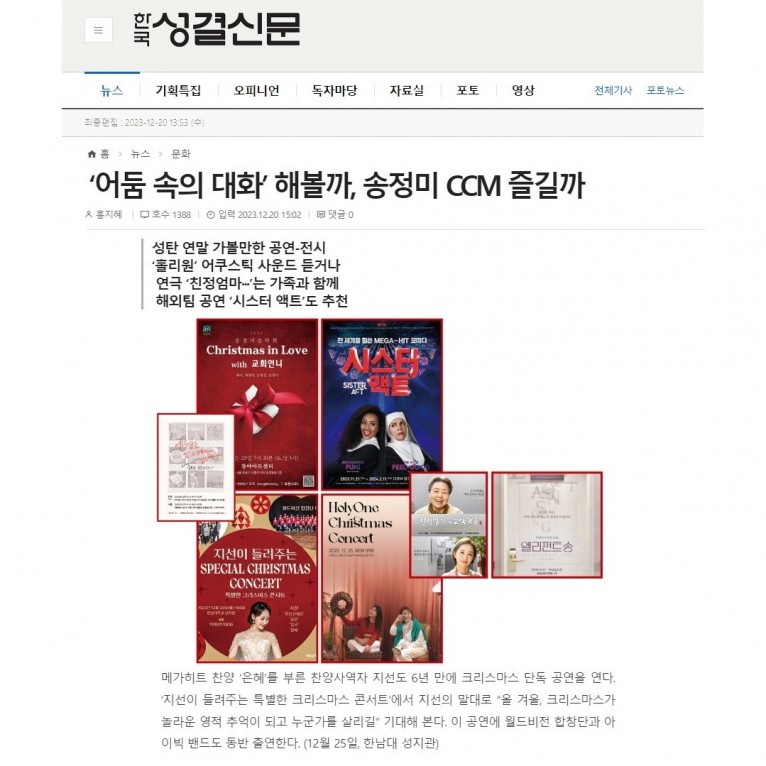 뮤직타임 [기사] 성탄 연말 가볼만한 공연-지선이 들려주는 특별한 크리스마스 콘서트(한국성결신문)