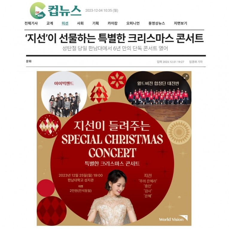 [기사] ‘지선’이 선물하는 특별한 크리스마스 콘서트(크리스챤연합신문)