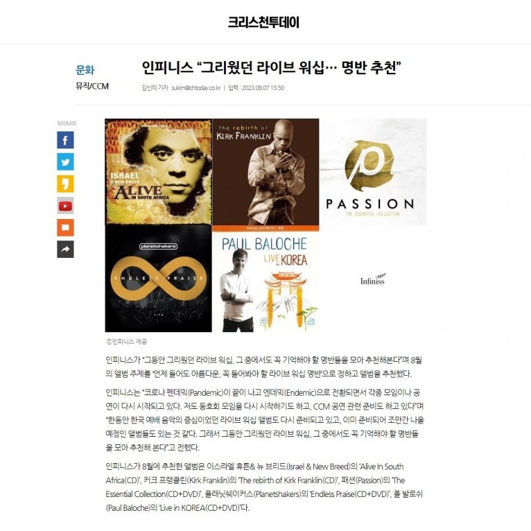 [기사] “그리웠던 라이브 워십… 명반 추천”(크리스천투데이)