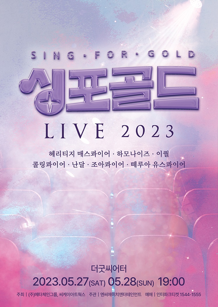 퍼포먼스 합창단 서바이벌 프로그램 SBS “싱포골드” 우승팀인 헤리티지 매스콰이어(Heritage Mass Choir)와 TOP7이 함께하는 '싱포골드 LIVE 2023'이 오는 27일과 28일 서울 종로구 대학로에 위치한 더굿씨어터에서 개최된다.