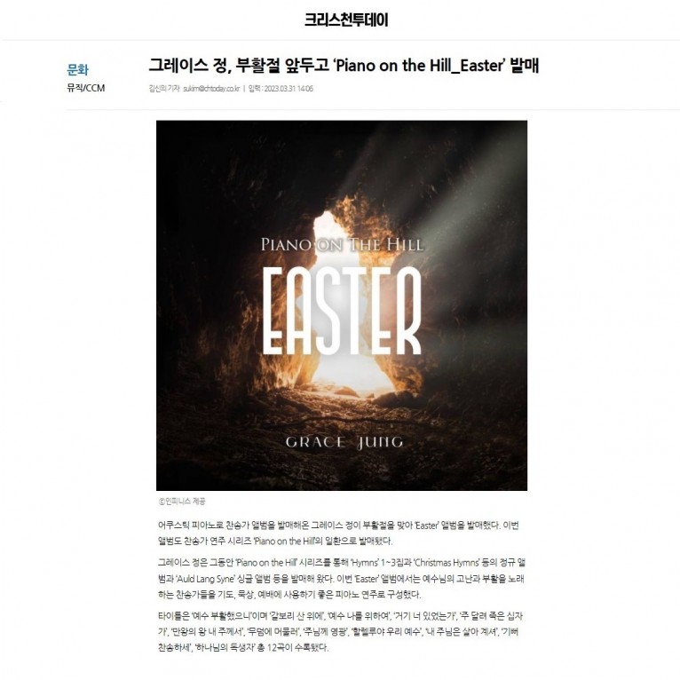 [기사] 그레이스 정, 부활절 앞두고 ‘Piano on the Hill_Easter’ 발매(크리스천투데이)