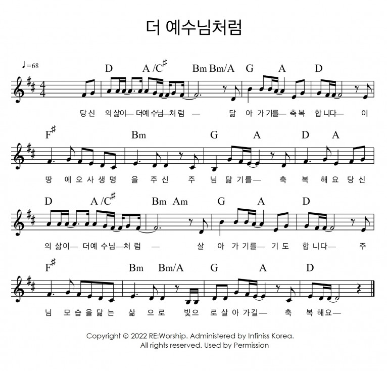 뮤직타임 [악보] 더 예수님처럼 - 리워십(RE:Worship) (더 예수님처럼)