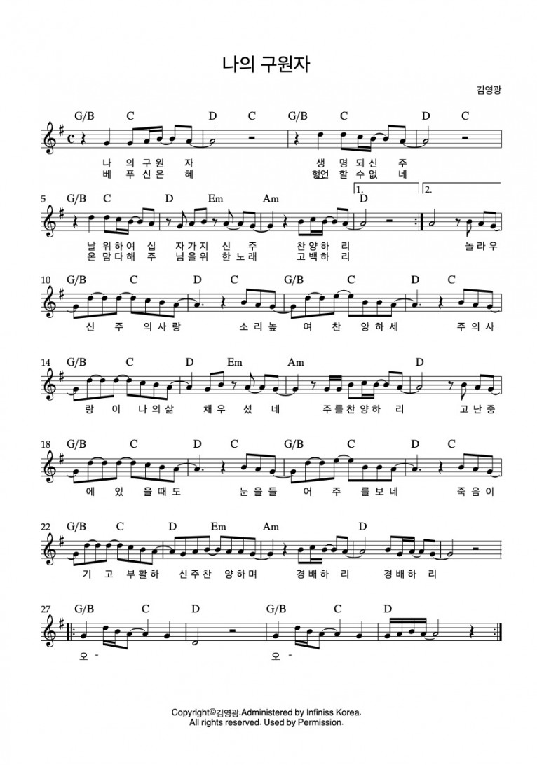 [악보] 나의 구원자 - 김영광 (예수의 사랑이) (EP)(음원)
