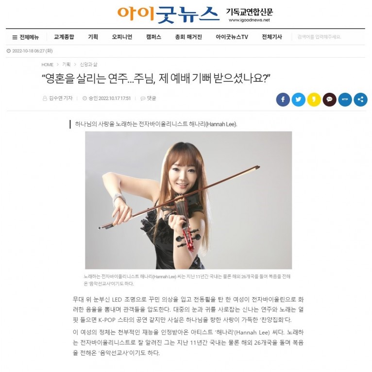 [기사] “영혼을 살리는 연주…주님, 제 예배 기뻐 받으셨나요?”