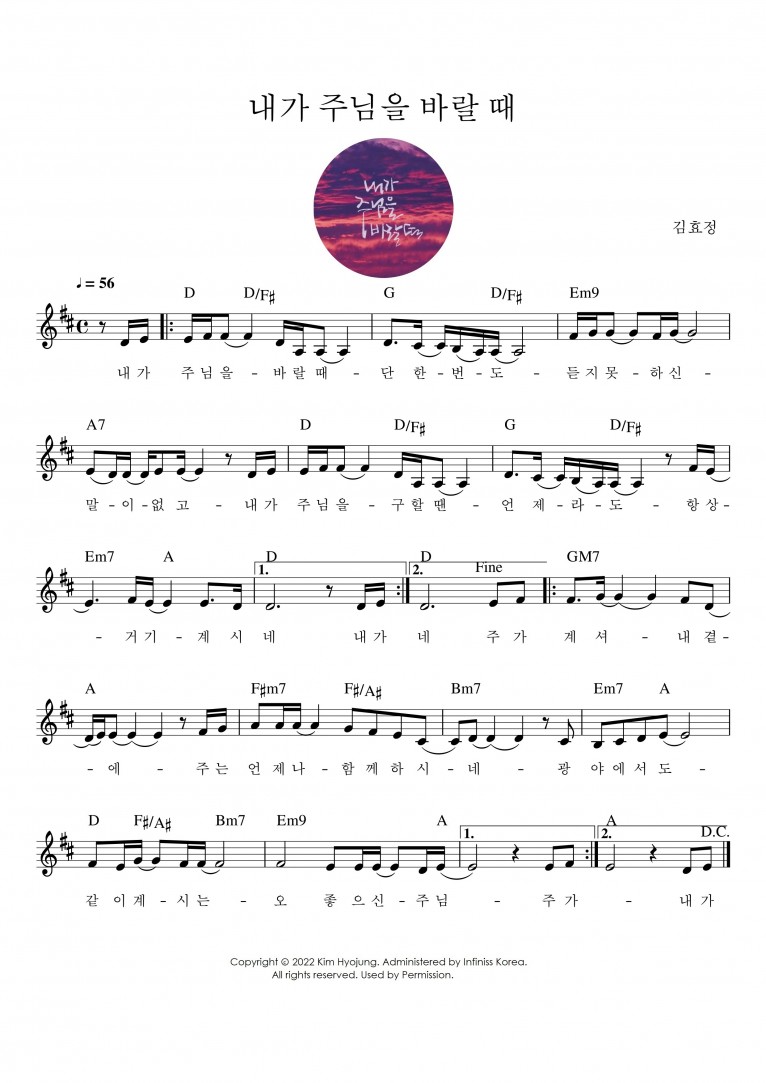 [악보] 김효정 - 내가 주님을 바랄 때 (싱글)(음원)