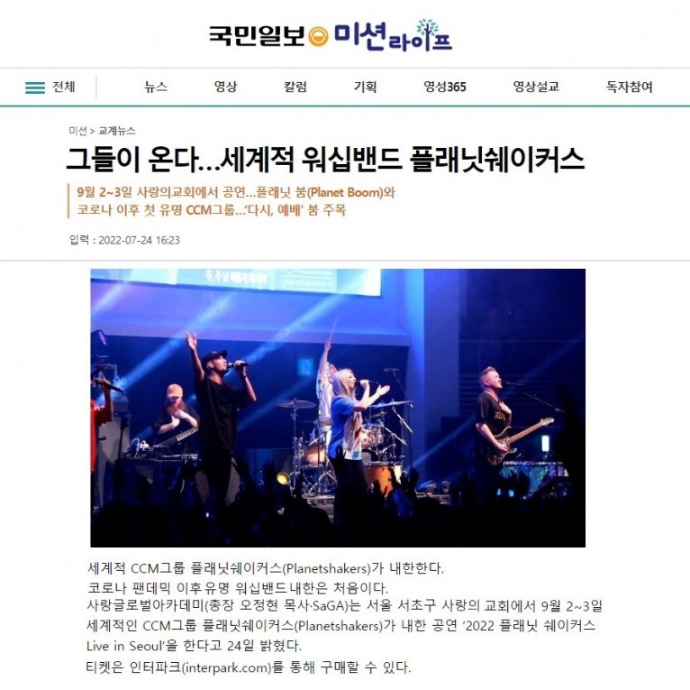 [기사] 그들이 온다… 세계적 워십밴드 플래닛쉐이커스