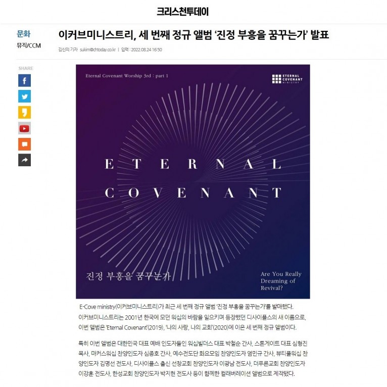 E-Cove ministry(이커브미니스트리)가 최근 세 번째 정규 앨범 ‘진정 부흥을 꿈꾸는가’를 발매했다.