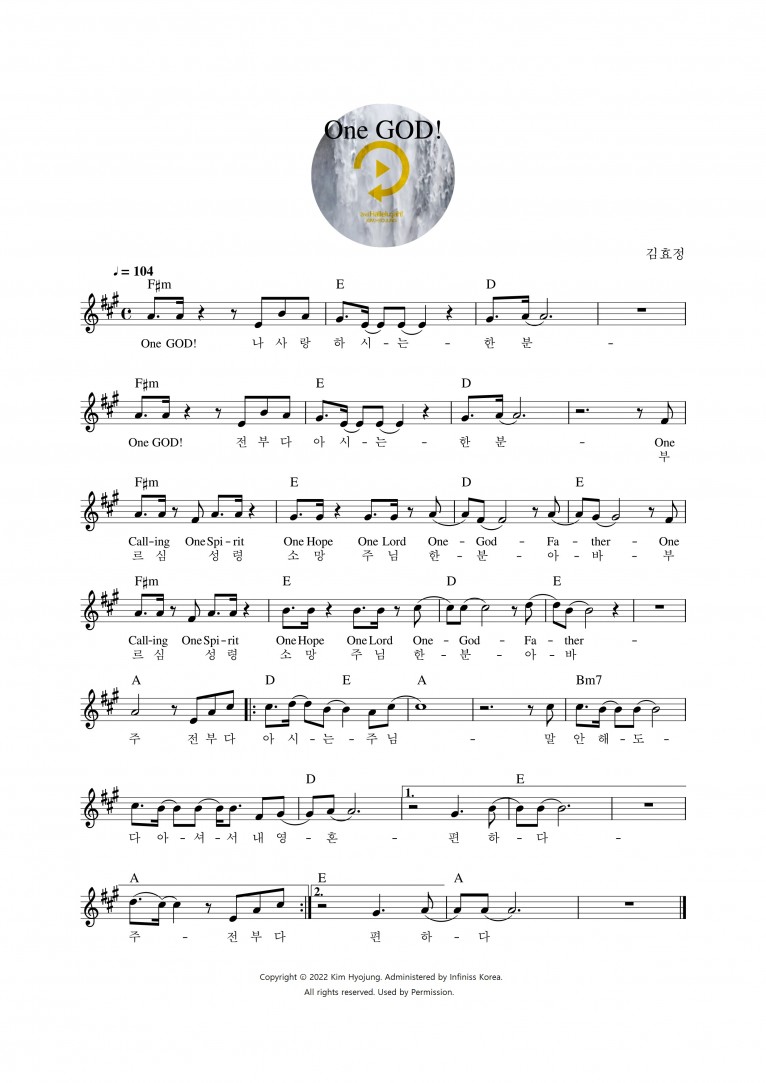 뮤직타임 [악보] One GOD! - 김효정 (2nd Hallelu:jah!)