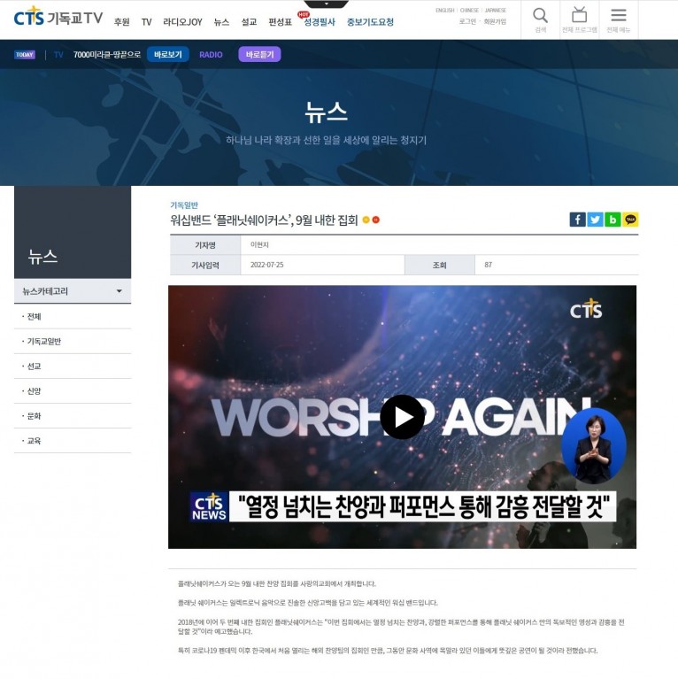 [보도] 워십밴드 ‘플래닛쉐이커스’, 9월 내한 집회