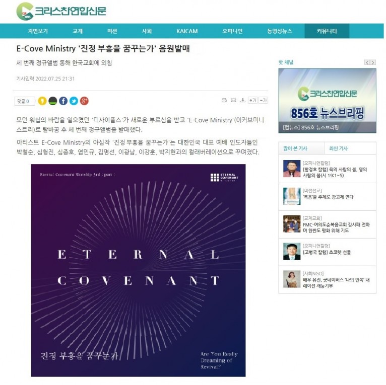 [기사] E-Cove Ministry '진정 부흥을 꿈꾸는가' 앨범발매