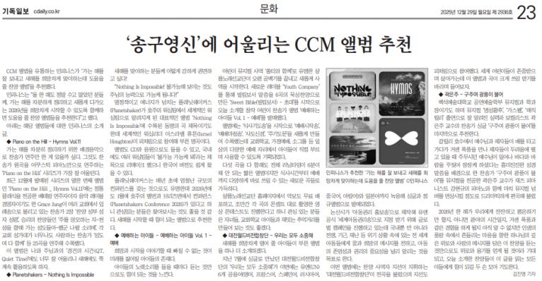 [기획기사] ‘송구영신’에 어울리는 CCM 앨범 추천(기독일보)