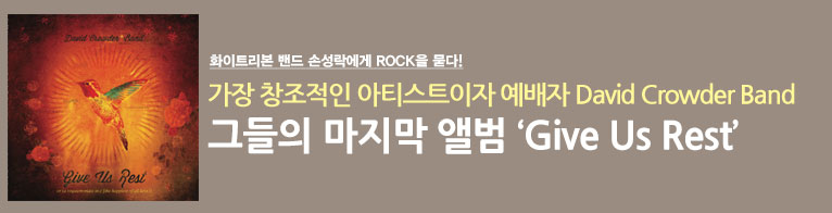 이 세 단어는 데이빗 크라우더 밴드를 가장 잘 설명할 수 있는 단어들이다. 그리고 사실 지금 이 글을 쓰고 있는 필자도 그런 면에서 데이빗 크라우더 밴드에게 깊은 영향을 받고 자라왔다고 할 수 있다. 곧 화이트리본밴드 3집 출시를 앞두고 있는 지금, 이들의 창의적이고 공교한 음악과 진정성 넘치는 고백을 들으며 작곡가와 프로듀서로서, 또 한 사람의 예배자로서 또 다시 큰 도전을 받고 있다.