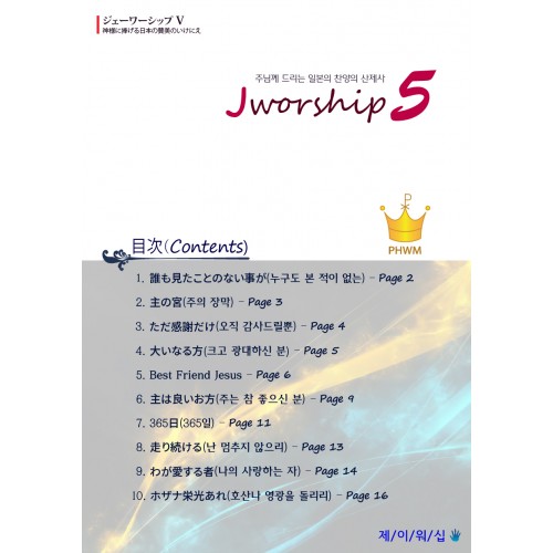 Jworship 5집 - 주님께 드리는 일본의 찬양의 산제사 (한국어+일본어 병용) (악보) 요약정보 및 구매
