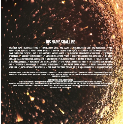 CHOIR AND GANG VOCALS RECORDED BY BUCKLEY MILLER AT PLAYGROUND STUDIOS, NASHVILLE, TN